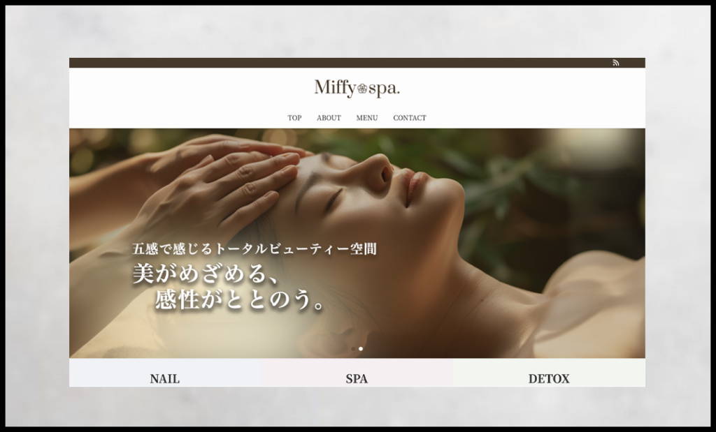 ホームページ情報 会社名Miffy spa業種スパ・エステURLhttps://salon.myweb-create-labo.net/